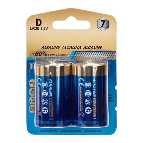 Type D LR20 1.5V Alkaline Battery Pack of 2 Ideal for Electric Devices and Toys.