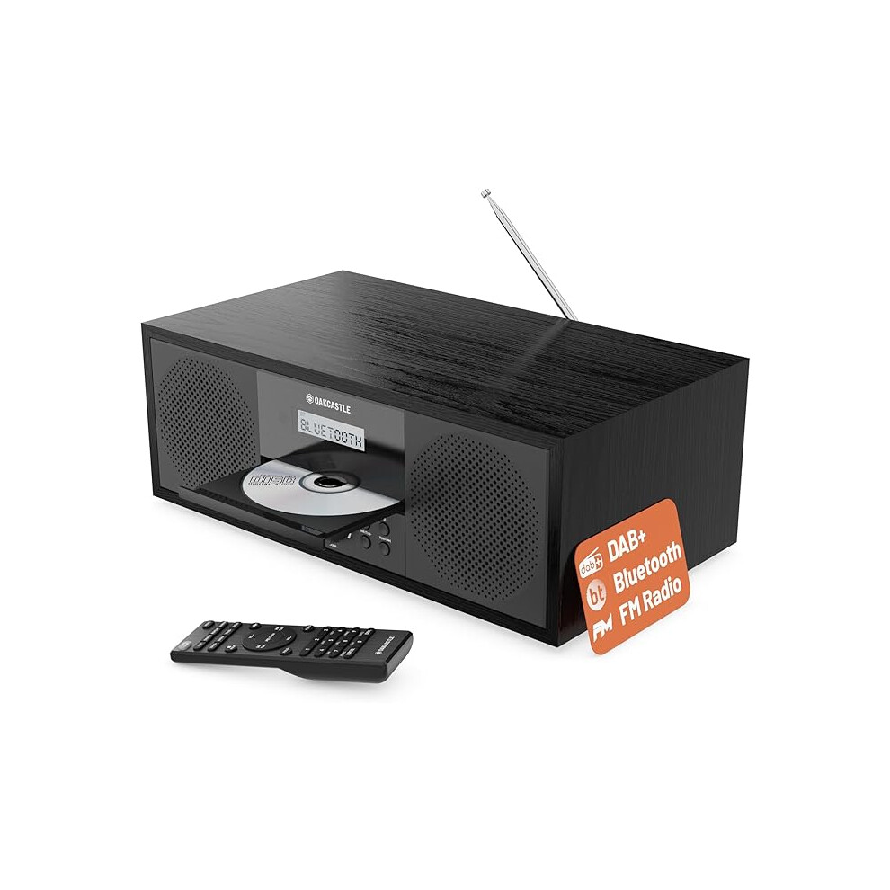 Bluetooth DAB+ Radio & CD Player | Mains Powered 60 Watt Stereo Hifi System for Home | Inbuilt Speakers, LED Display | Dual Alarm, 20 Presets & FM | USB, MP3, AUX | Remote Control | OAKCASTLE DAB500