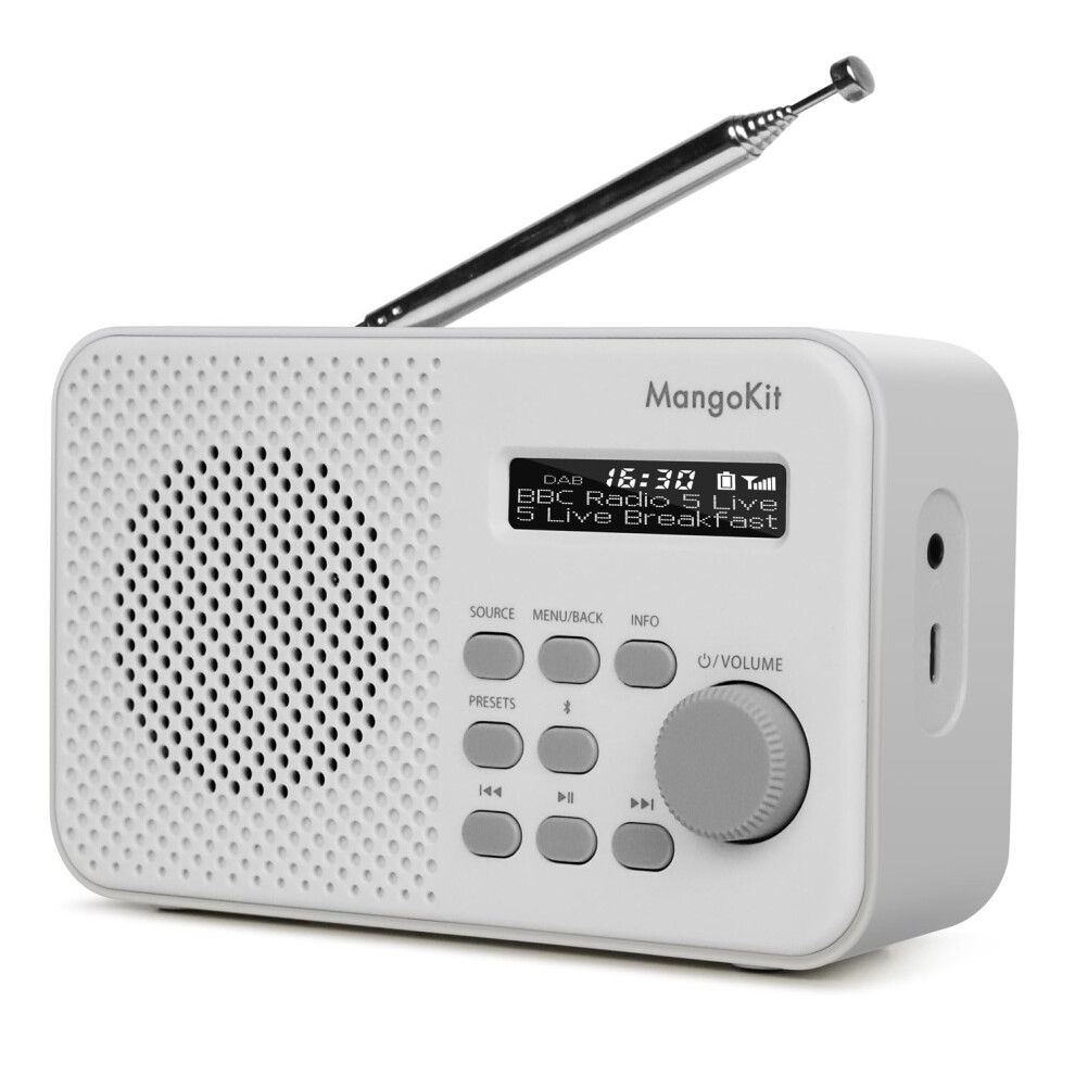 MangoKit MD2 DAB Radio Portable,DAB+ Digital Radio,5.3 Bluetooth Radio,FM Kitchen Radios Mains and Battery, Display, Alarm&Clock&Snooze Timer,40 Pres
