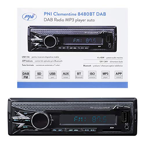 DAB Autoradio MP3 car player PNI Clementine 8480BT 4x45w, 12 / 24V, 1 DIN, with SD, USB, AUX, RCA, Bluetooth and USB 1.5A for phone charging