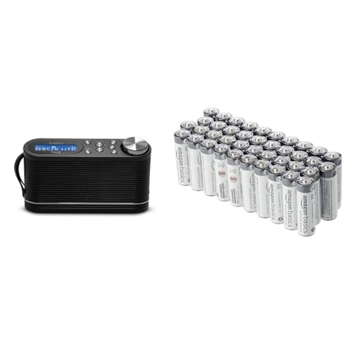 Roberts Play10 DAB/DAB plus/FM Digital Radio with Simple Presets - Black & Amazon Basics AA Alkaline Batteries, Industrial Double A, 5-Year Shelf Life, 40-Pack