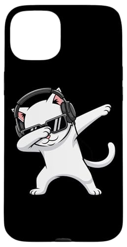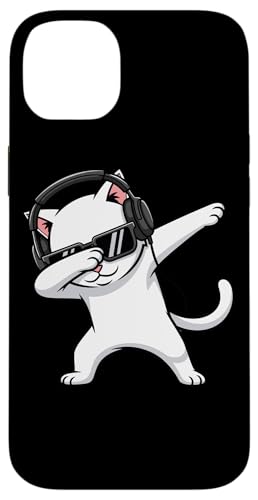 White Cat with Headphones Dab Case for iPhone 15 Plus
