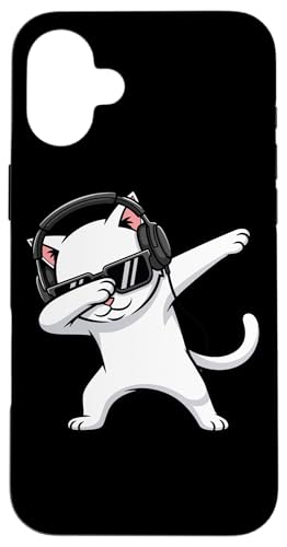 White Cat with Headphones Dab Case for iPhone 16 Plus