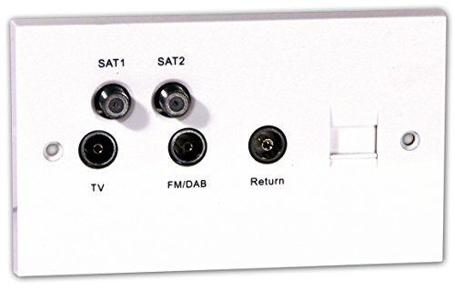 Screened Quadplex Face Plate, Labgear Twin Flush Faceplate with Quadruplex F Sat, Coax TV & Coax FM/DAB Socket Plus Return & Phone