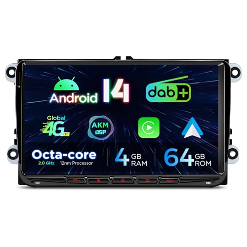 XTRONS 9" Android 14 DAB+ Car Stereo for VW Candy Golf Jetta Passat Touran Skoda Yeti Seat, Octa Core 4+64GB Radio Player 4G AKM DSP 2K CarAutoPlay Auto GPS Navigation Bluetooth New UI Cooling System