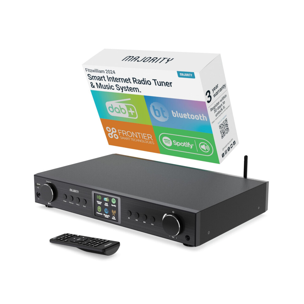 Bluetooth Internet Radio with DAB+ | Digital Tuner for Hifi Stack | FM, Spotify Connect, Podcasts | 90+ Presets, Colour LED Display | USB, AUX, RCA | Remote Control | MAJORITY Fitzwilliam 2024 Black
