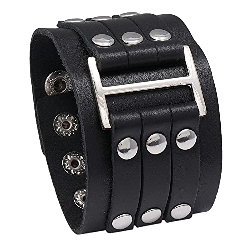 MOCHAMIK Men's Bracelet,Wristband Cuff Bracelet, Stylish Black Punk Leather Bracelet, Dad Gift, Wide Wristband Adjustable Bracelet, Personalized Leather Bracelet