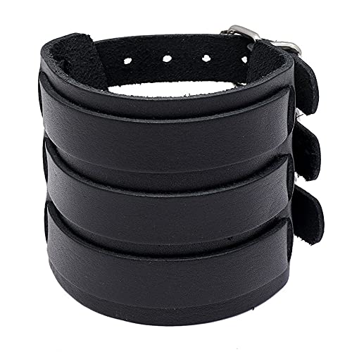 MOCHAMIK Men's Bracelet,Wristband Cuff Bracelet, Classic Retro Black Leather Punk Rock Bracelet, Dad Gift, Wide Strap Adjustable Bracelet, Personalised Gifts Boyfriend Gift,