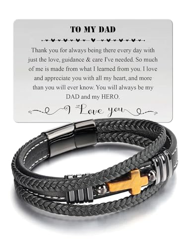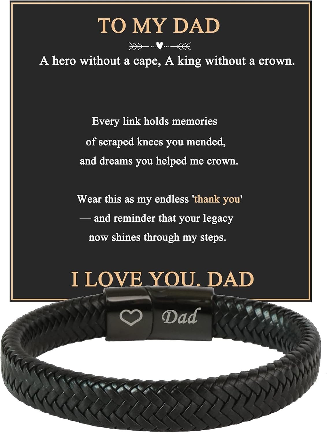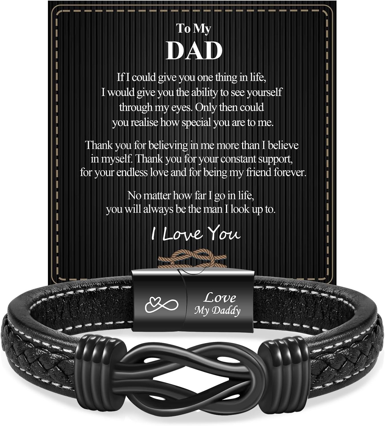EPVID Gifts for Dad, Leather Bracelet Dad Gifts from Daughter Son, Perfect Christmas Birthday Valentines Day Fathers Day Gift for Men, Stocking Fillers for Men