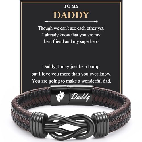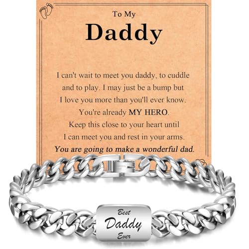 EYQV Daddy Fathers Day Gift from Bump, Engraved Bracelet Dad to Be Gifts, Best Christmas Fathers Day Birthday Gifts for Daddy to Be, Stocking Fillers for Men