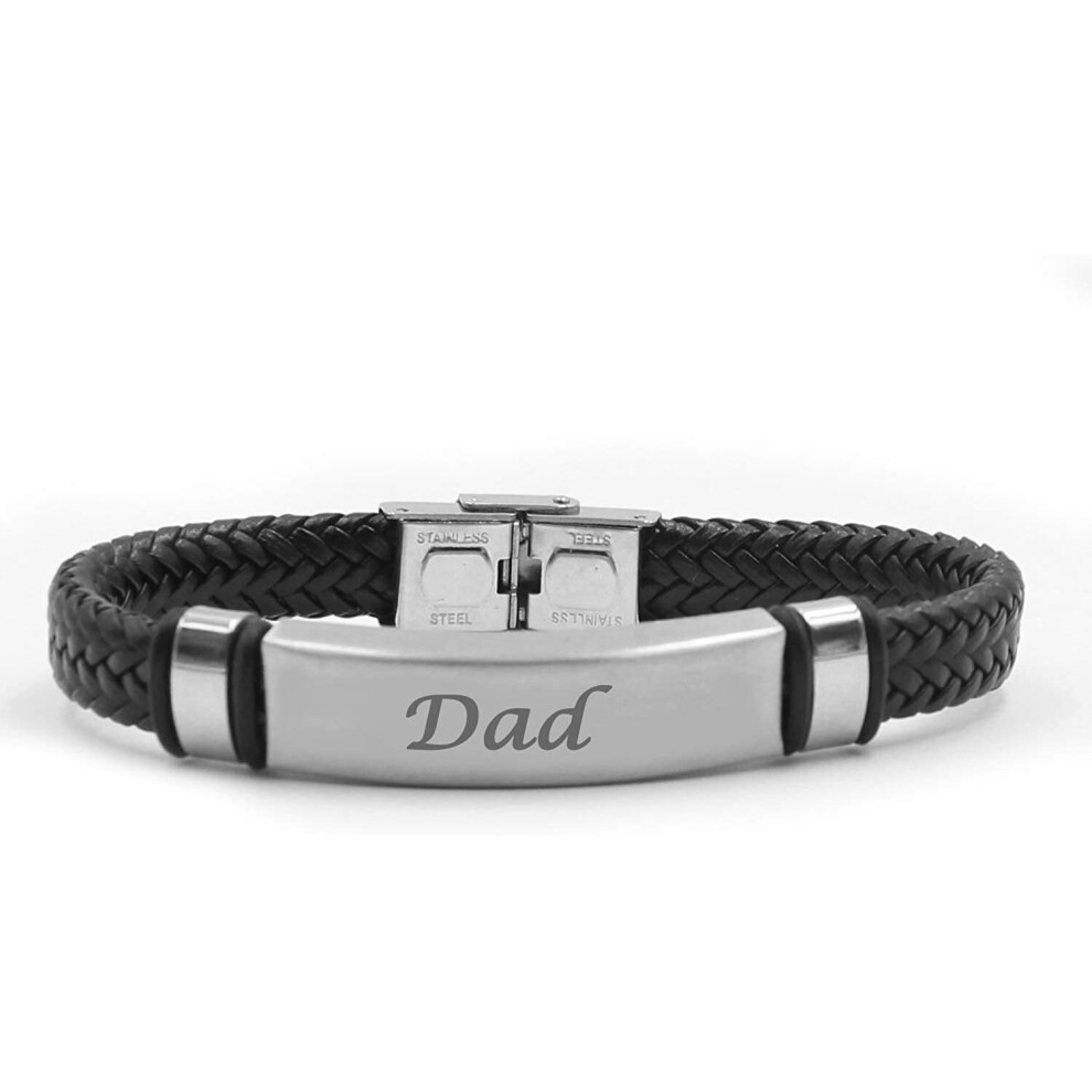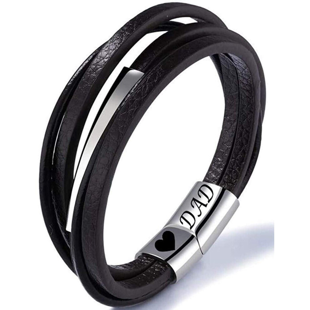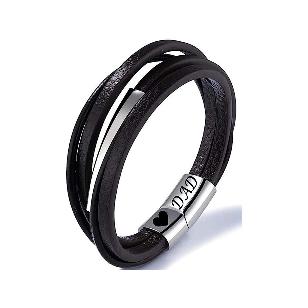 Dad Mens Leather Bracelet Engraved DAD Leather Bracelet Bangle with Gift Box for Dad Father Gift