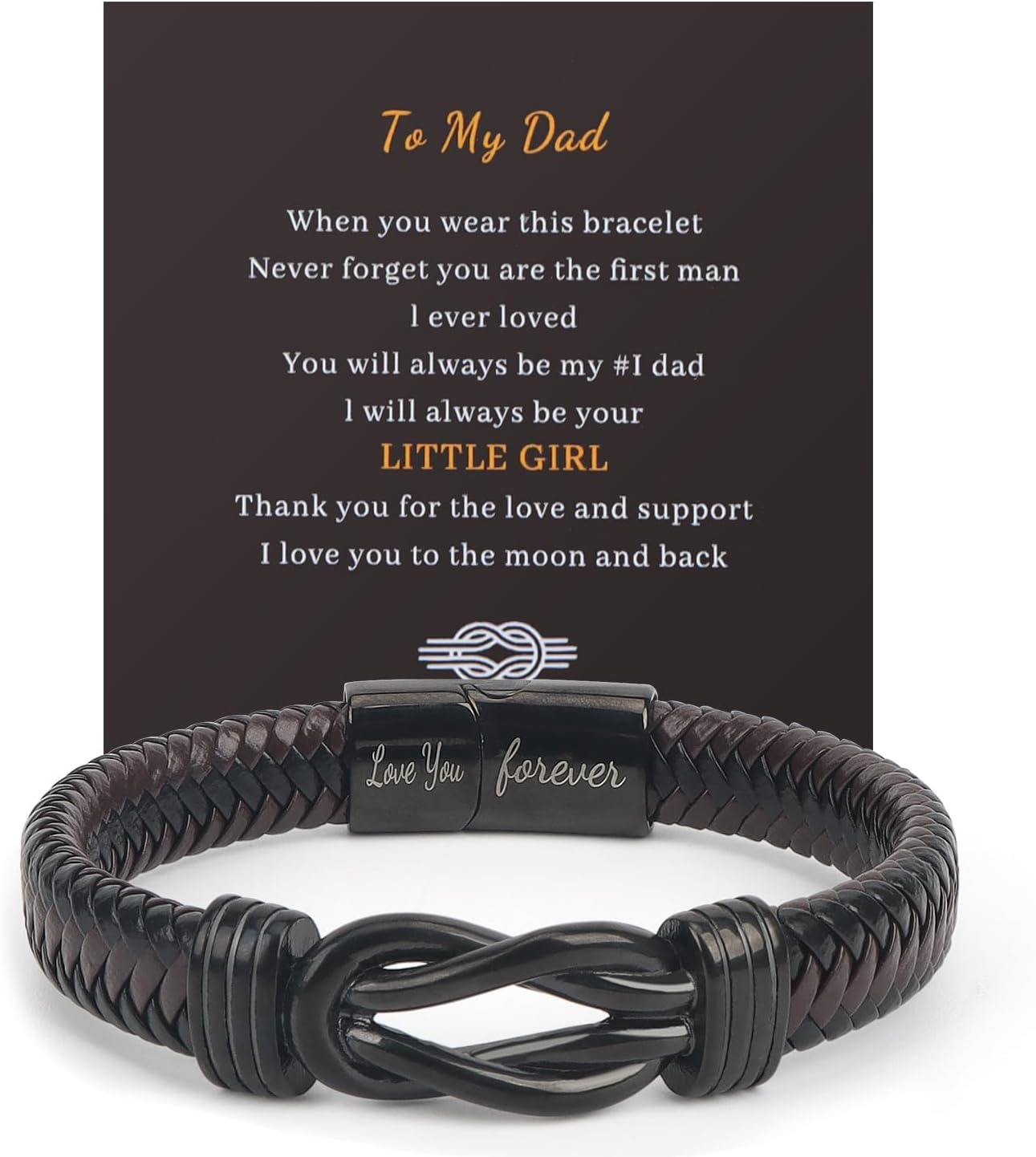 Shoppawhile Gifts for Dad Mens Leather Bracelet Dad Fathers Day Birthday Gifts from Daughter Son Unique Presents for Daddy Christmas