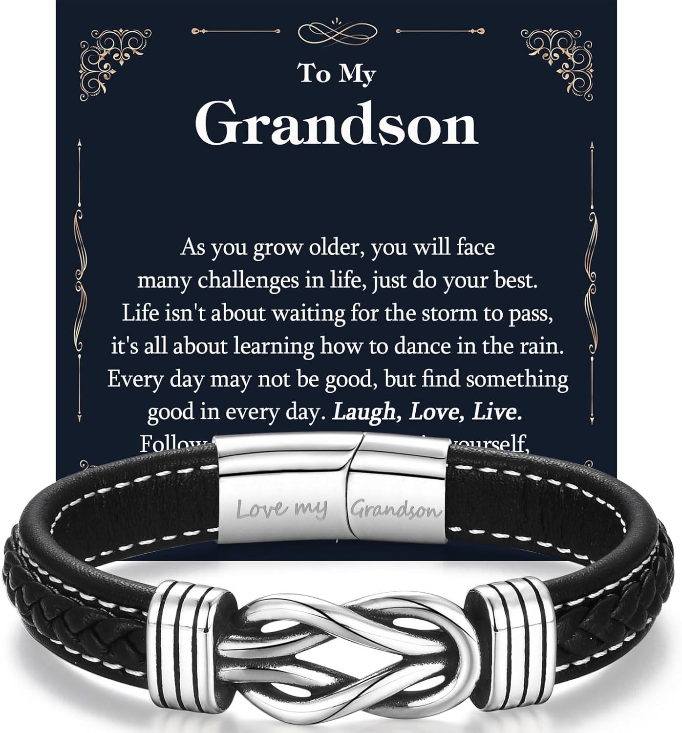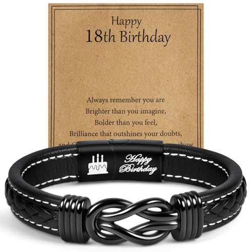 Aolso Gifts for My Son Grandson Husband Dad, Mens Bracelet, Birthday Gifts Valentines Gift for Men Teenage Boys, Personalized Engraved Knot Leather Bracelet for Husband Boyfriend Dad Son-18th