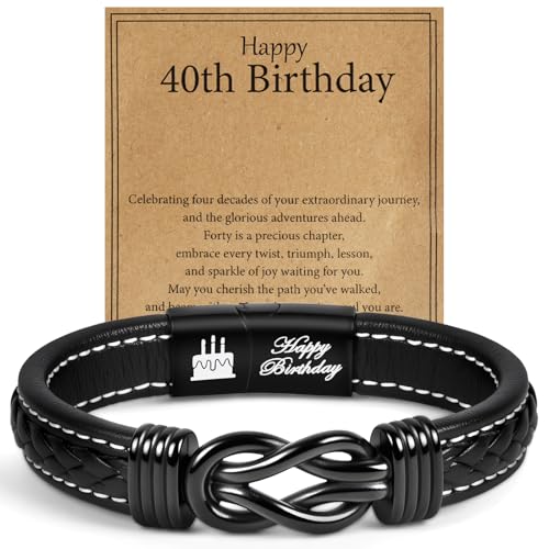 Aolso Birthday Gifts for My Son Grandson Husband Dad, Mens Bracelet, Birthday Gifts Valentines Gift for Men Teenage Boys, Personalized Engraved Knot Leather Bracelet for Husband Boyfriend Dad Son-40th
