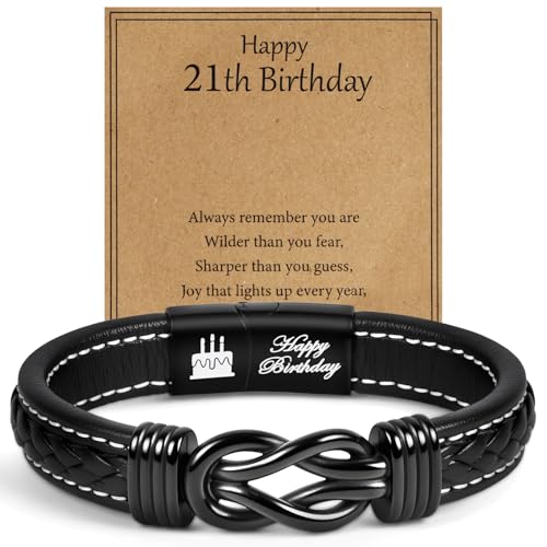 Aolso Birthday Gifts for My Son Grandson Husband Dad Boyfriend, Mens Bracelet, Birthday Gifts Valentines Gift for Men Teenage Boys, Personalized Engraved Knot Leather Bracelet for Husband Dad Son-21th