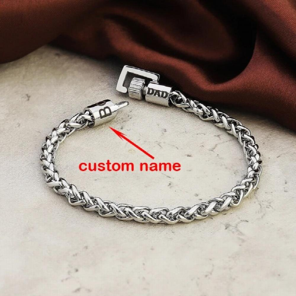 Stainless Steel Name Dad Mens Bracelet Personality Creative Gift Birthday Gift Holiday Wishes