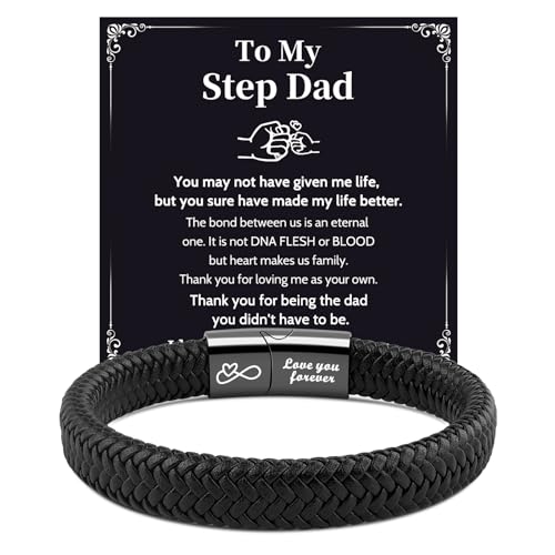 VU100 Step Dad Gifts Father's Day Gifts for Him Best Step Dad Bracelet Leather Bracelet for Men Love You Forever Christmas Birthday for Daddy Father