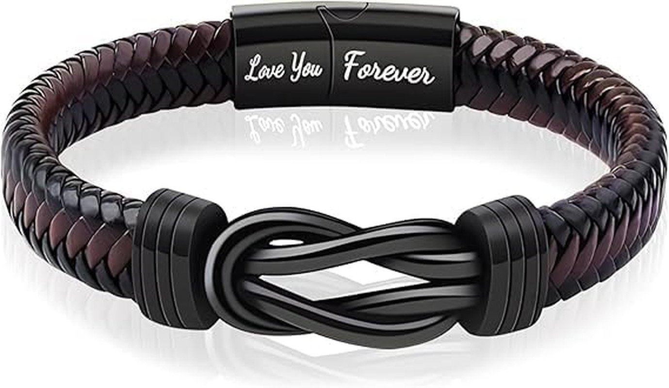 Birthday Gifts for Dad,Brown Braided Leather Bracelets for Men, Engraved Bracelets Father’s Day Gift for Dad, Infinity Knot Bracelet Men Jewelry 22cm/8.5inch