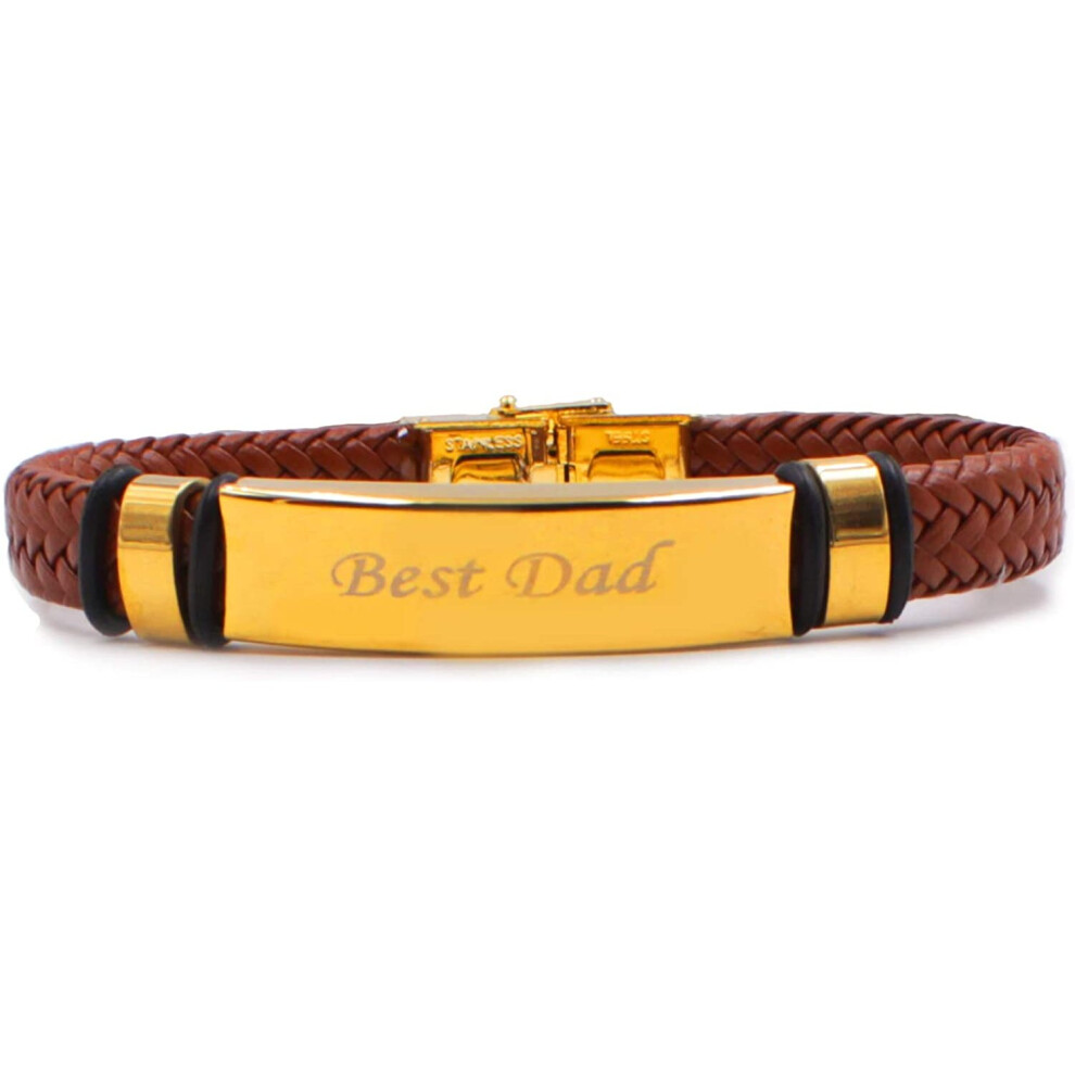 Kigu Best Dad Bracelet,Personalised dad Bracelet,Brown Premium Leather Bracelet, Gifts for dad,customised Bracelet for dad, for dad,