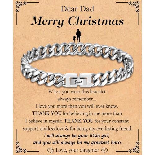 TEVOP Dad Christmas Gifts, Engraved Bracelet Dad Gifts from Daughter, Cuban Chain Bracelet Father Christmas Presents