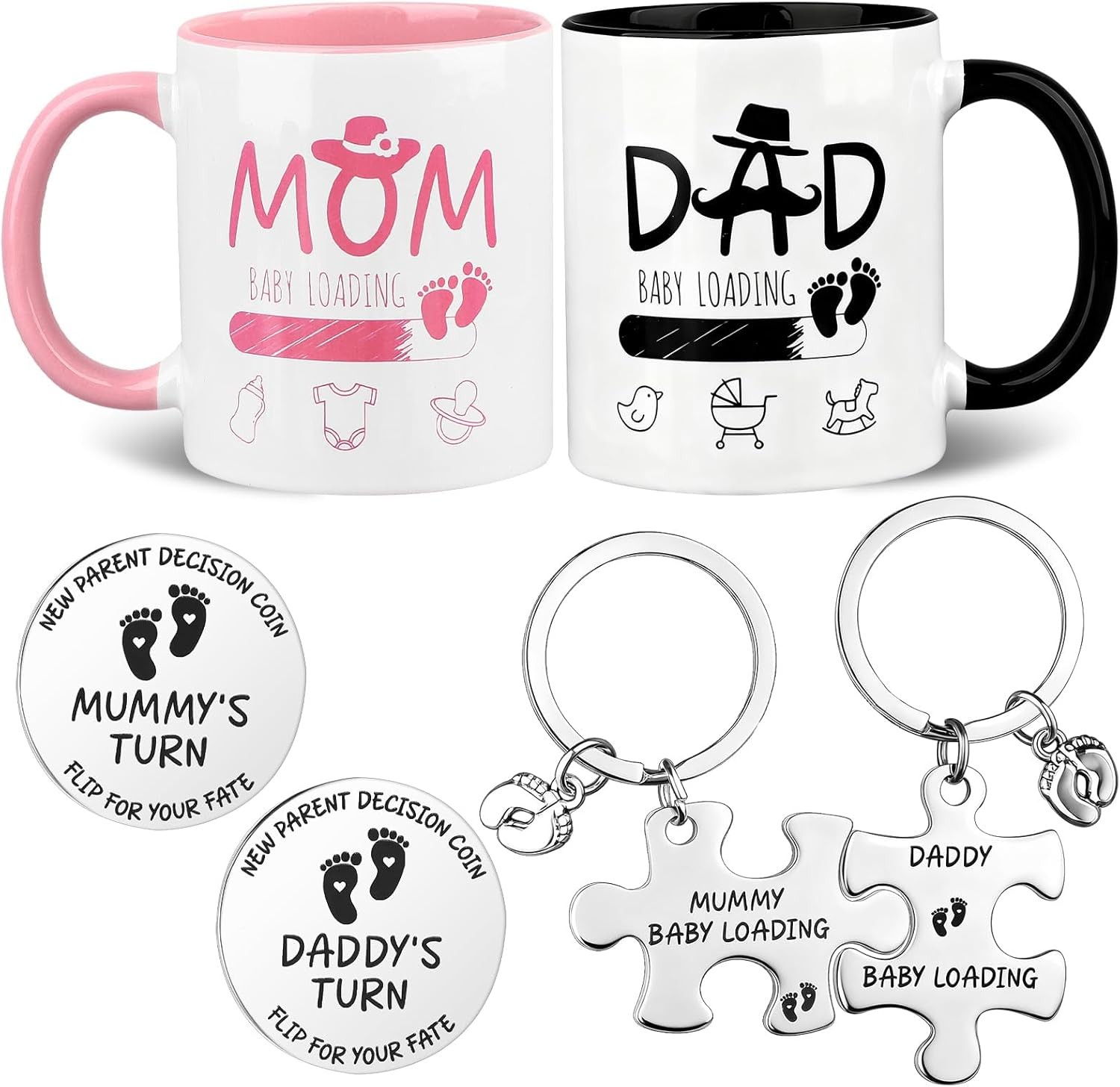 New Mum Dad Coffee Mugs Set with Decision Coin Keychain Pregnancy Gifts for Exp