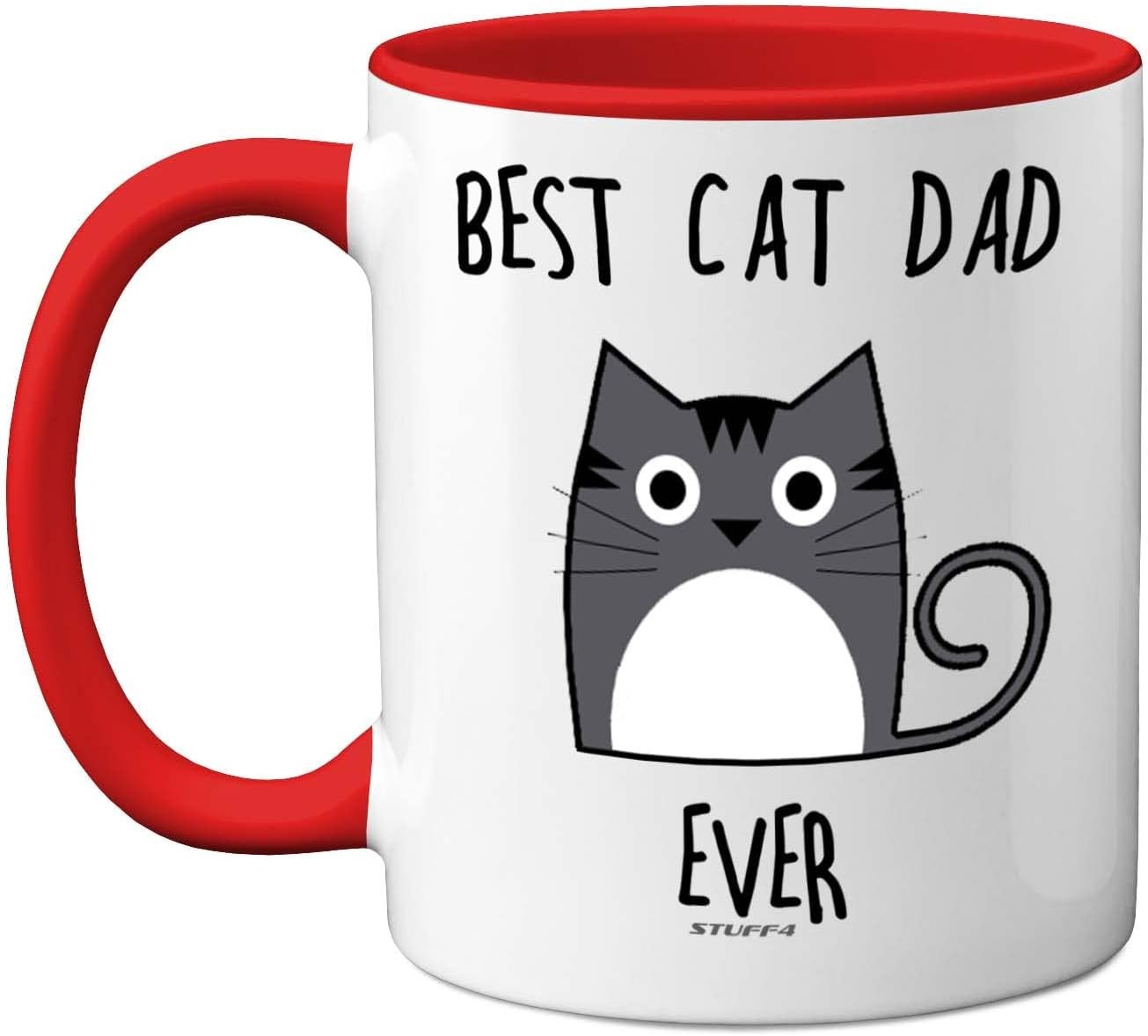 Stuff4 Best Cat Dad Ever Mug, Gifts for Cat Lovers, Dad Gifts, Cute Mugs for Men, Funny Coffee 11oz Ceramic Dishwasher Safe Premium Red Handle