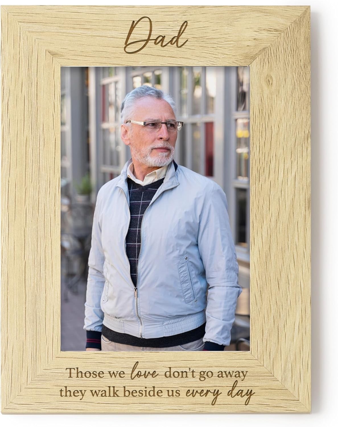 eBuyGB Dad Memorial Photo Frame, In Loving Memory Wooden Picture Frame, Engrave