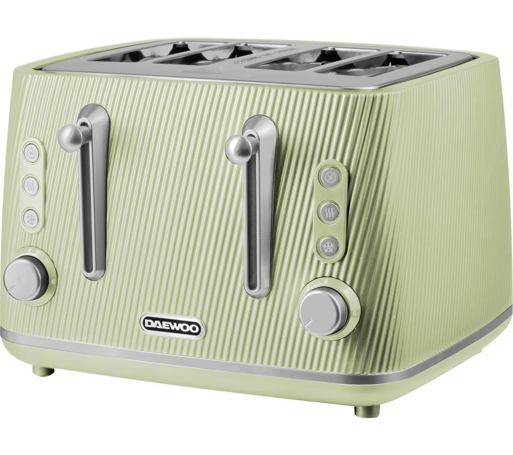 Daewoo 'Cascade' 4-Slice Toaster Ridge Textured Finish Defrost Reheat Cancel in Pale Green | Size: Large