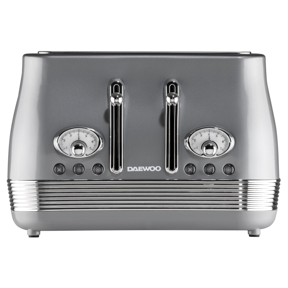 Daewoo Denver Smoked Grey 4 Slice Toaster - Stylish Design with Browning Gauge