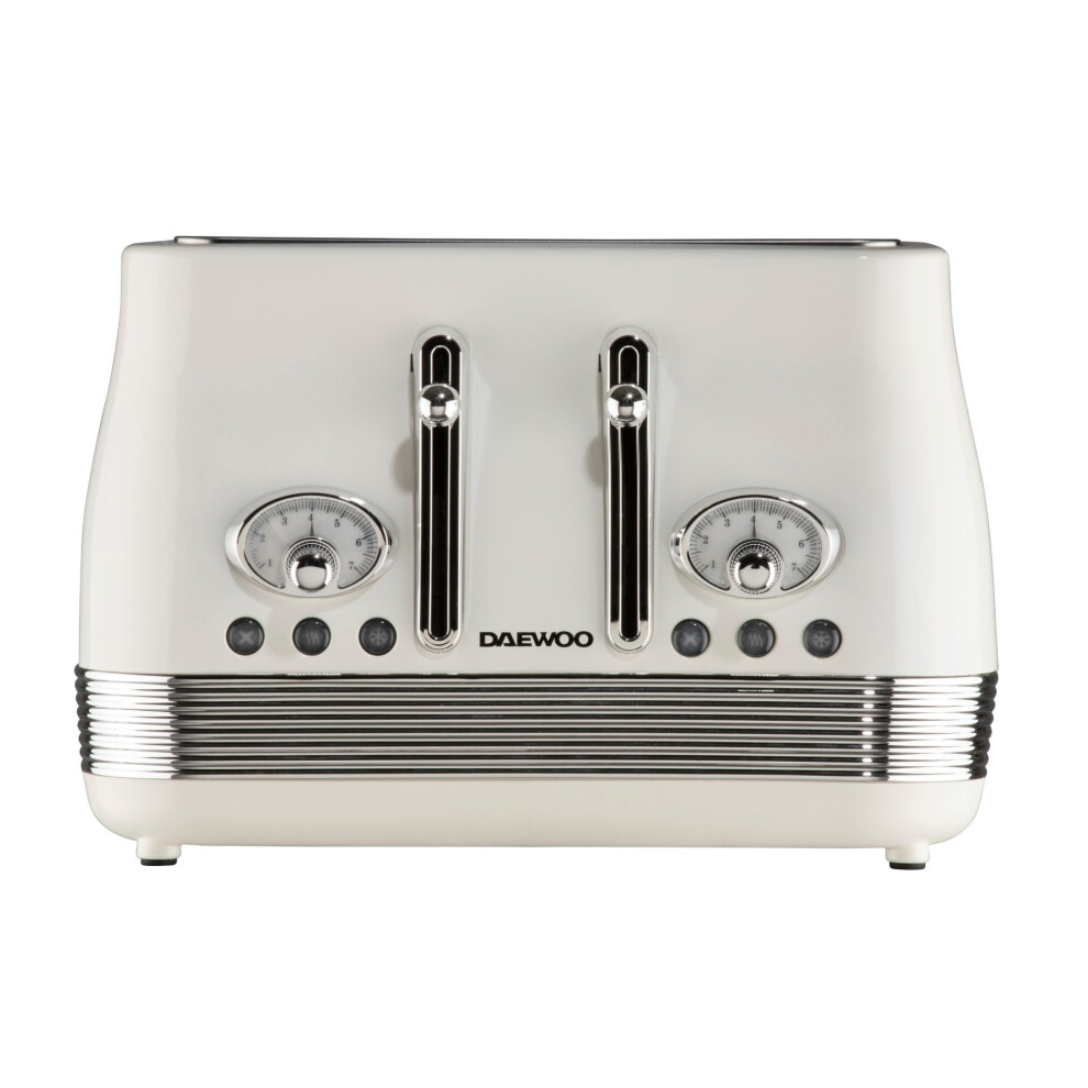 Daewoo 1750W 'Kensington' Cream Stainless Steel & Retro 4 Slice Toaster