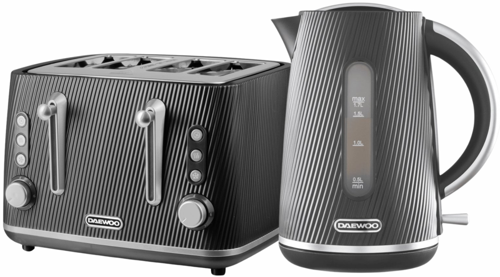 Daewoo Cascade 1.7L Jug Kettle and 4 Slice Toaster Black Ribbed Texture Design