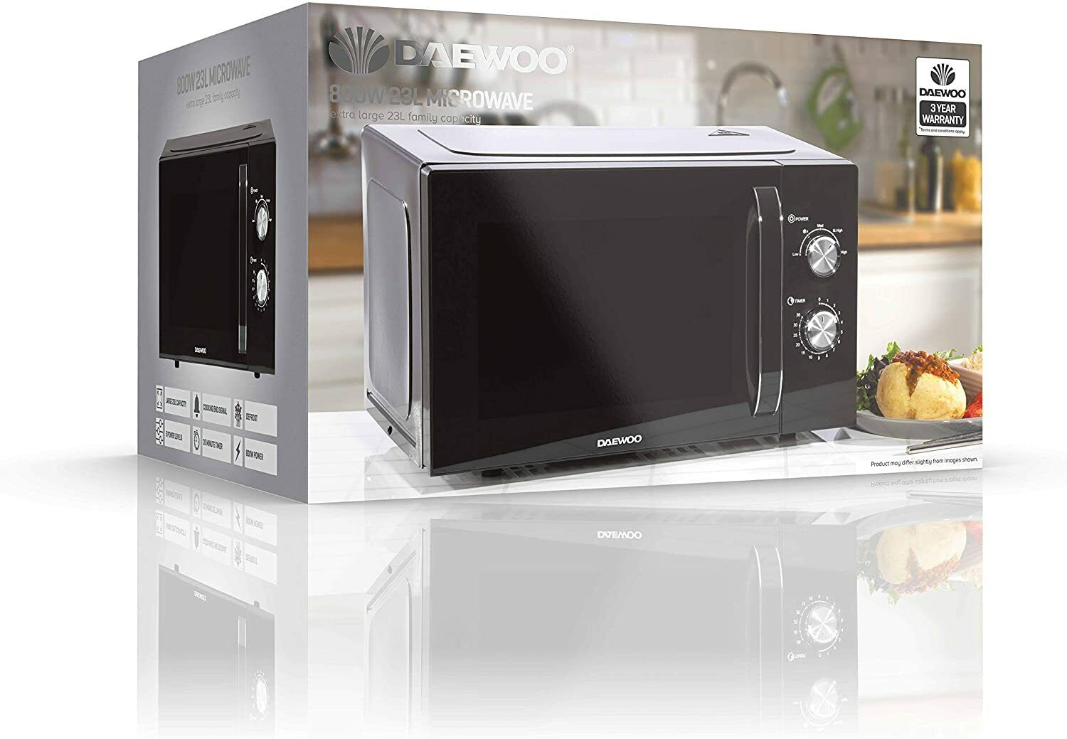 Daewoo 800W Large 23L Microwave Manual 35 Min Timer 5 Power Settings Auto Defrost Black