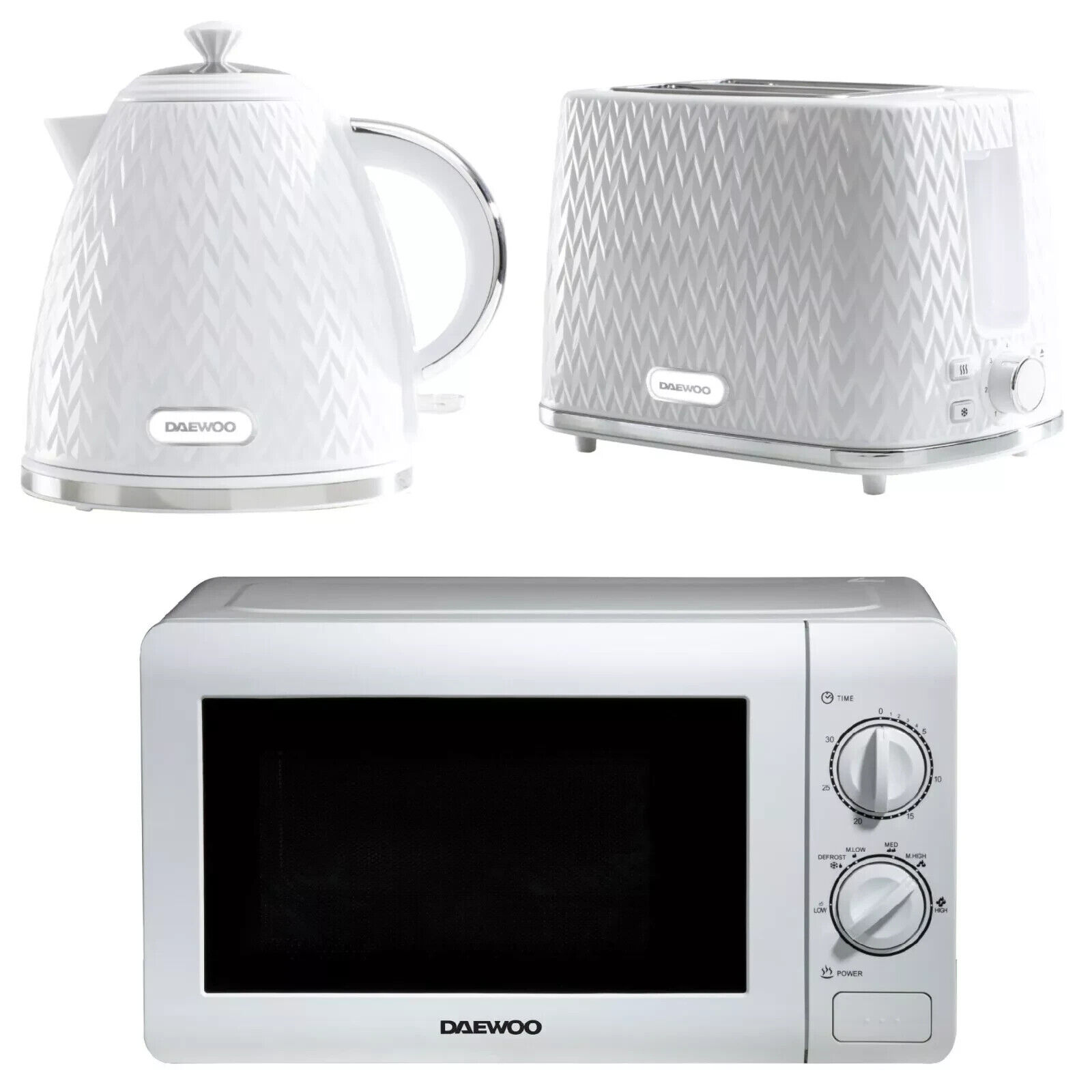 Daewoo Argyle Kettle Toaster and Microwave Set 800W 20L, 2 Slice, Jug White