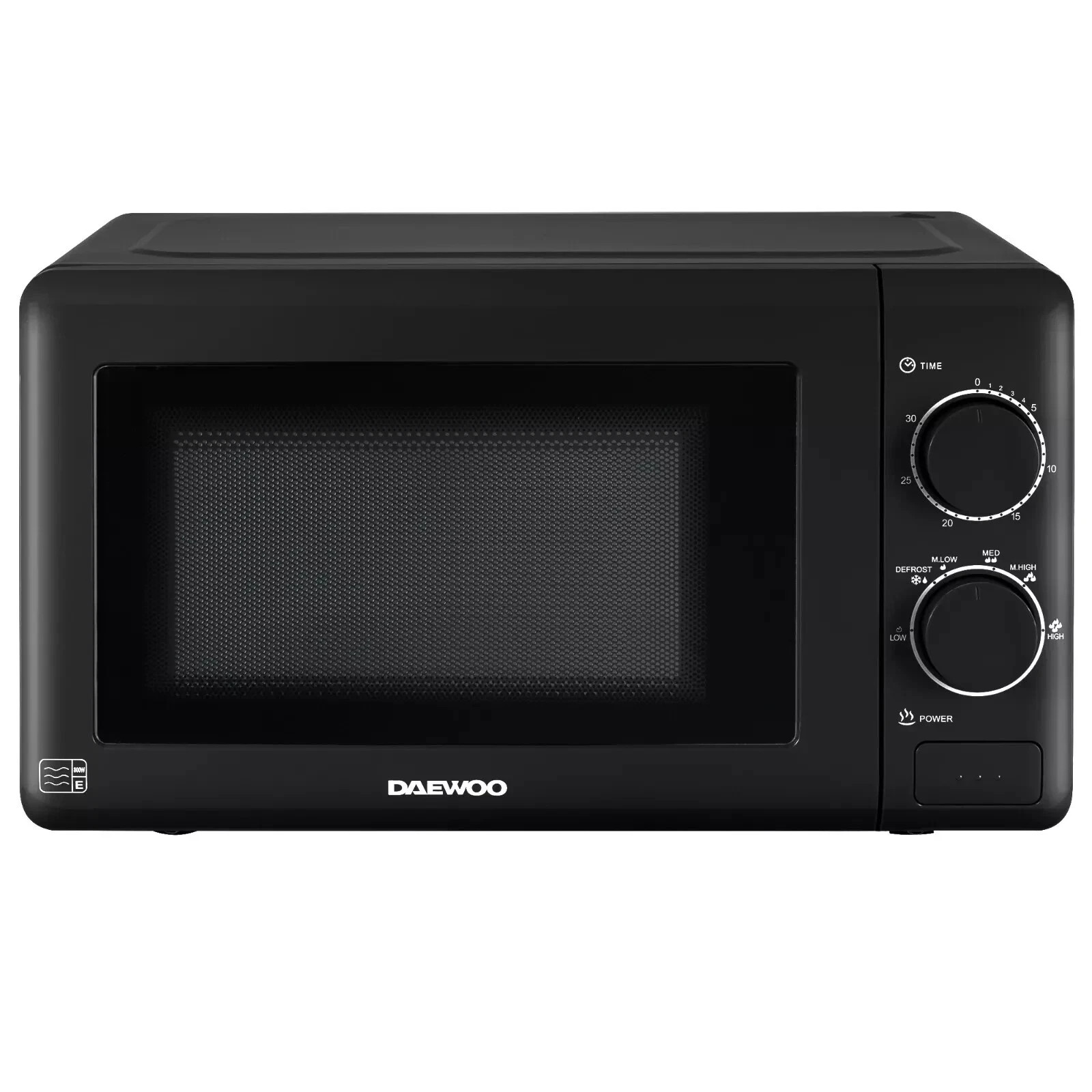 Daewoo 20L 800W Manual Microwave 5 Power Setting 30Min Timer Defrost Black