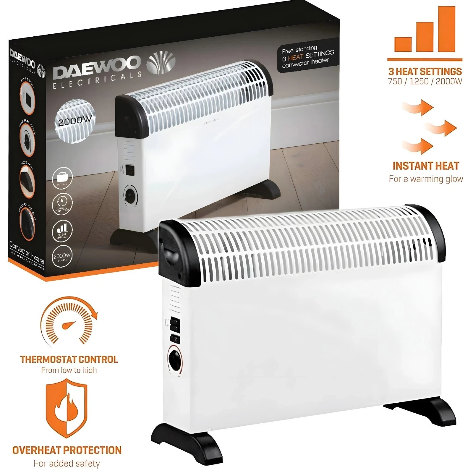 Daewoo HEA1146GE 2000W Convector Heater in White 3 Heat Settings