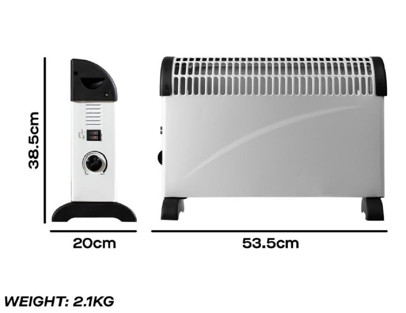 2KW Convector Heater 750/1250W Electric Heater 3 Heat Settings Thermostat