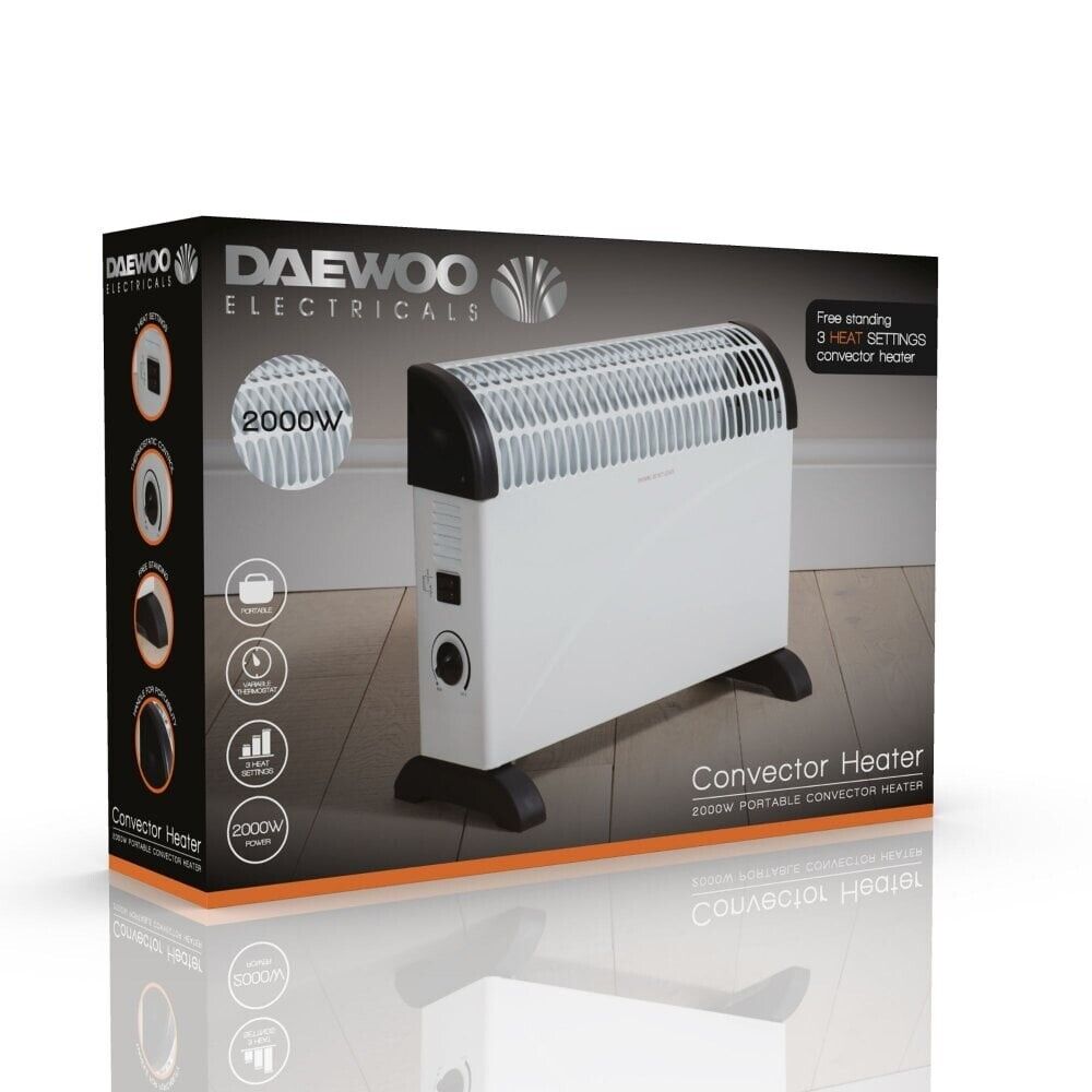 Daewoo Electric Convector Heater with Thermostat 3 Heat Settings 2000W Portable