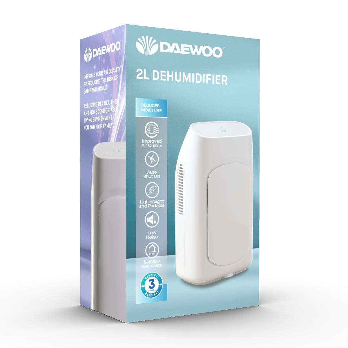 DAEWOO 12L Dehumidifier with Air Purifier – 12L/day Extraction, Digital Display, Laundry Mode