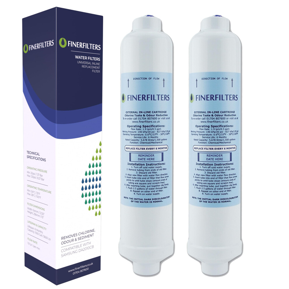2 x Finerfilters FF-6010PF Fridge Water Filters Compatible with Samsung, LG, Daewoo, GE, Bosch etc. Fridge Using Inline Water Filters