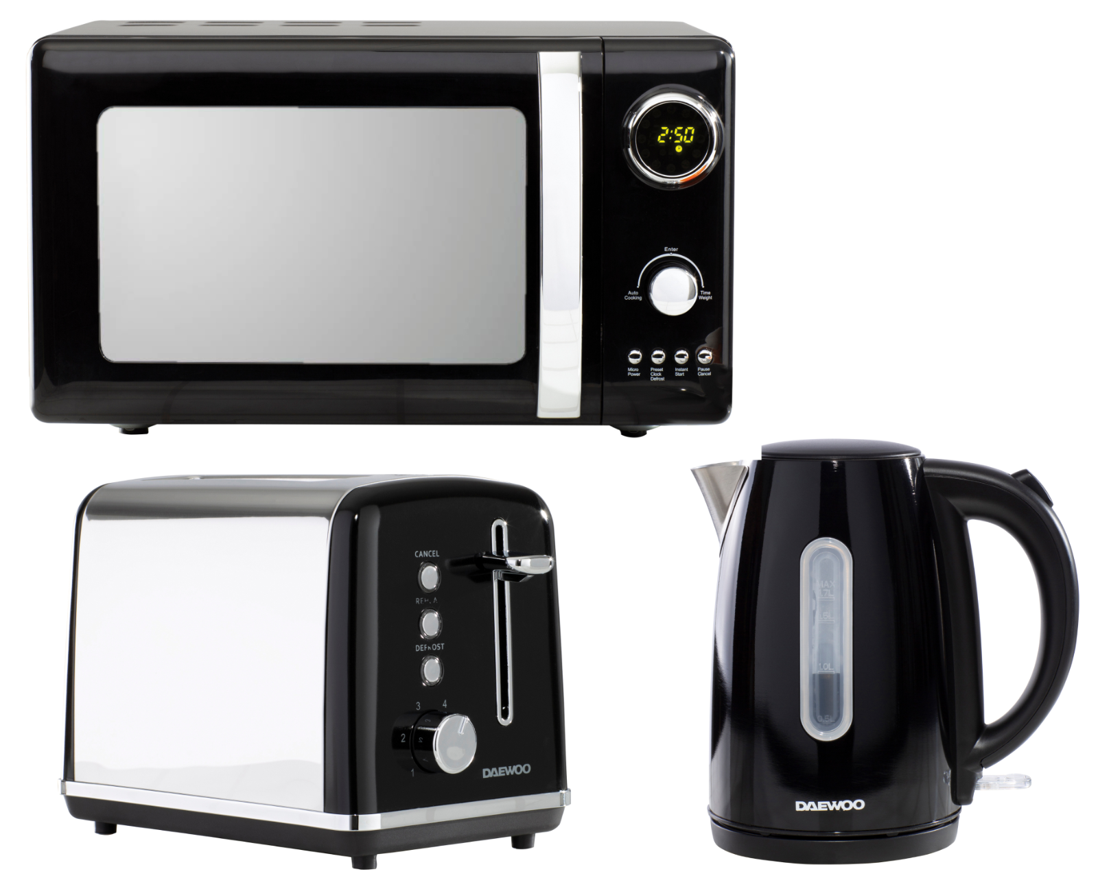 Daewoo Kensington Jug Kettle, 2 Slice Toaster & Microwave Matching Set Black