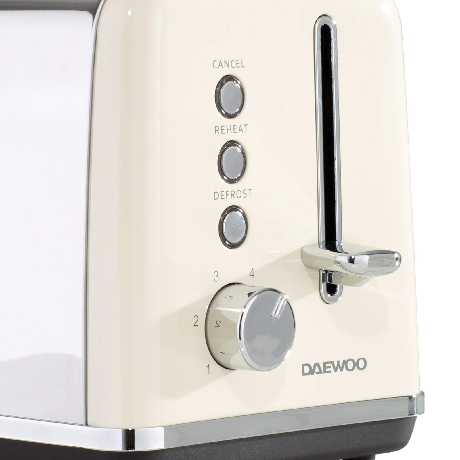 Daewoo 'Kensington' 2 Slice Toaster Stainless Steel Defrost Reheat 810W in Cream