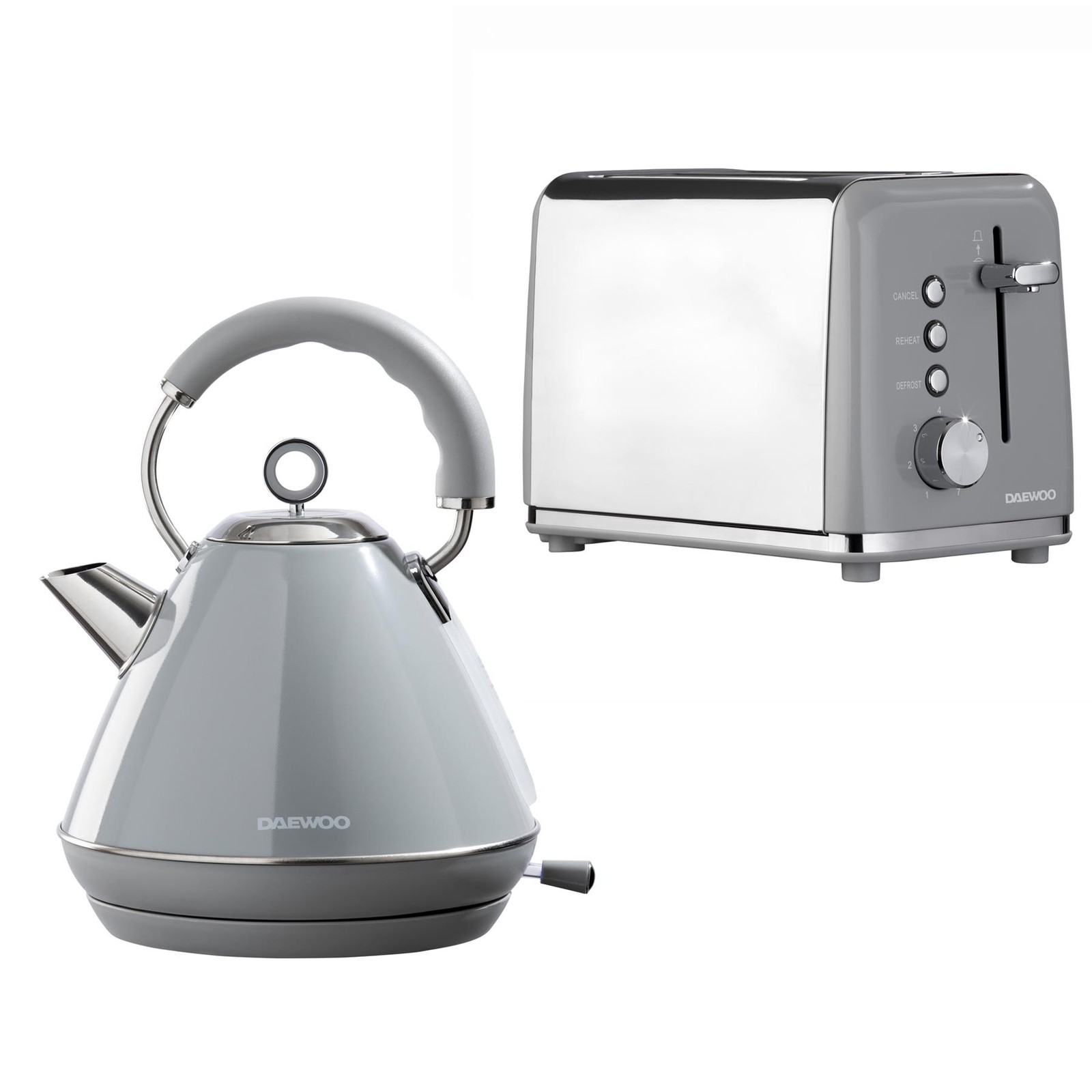 Daewoo Kensington Grey 2 Slice Toaster & Pyramid Kettle Set 1.7L Matching