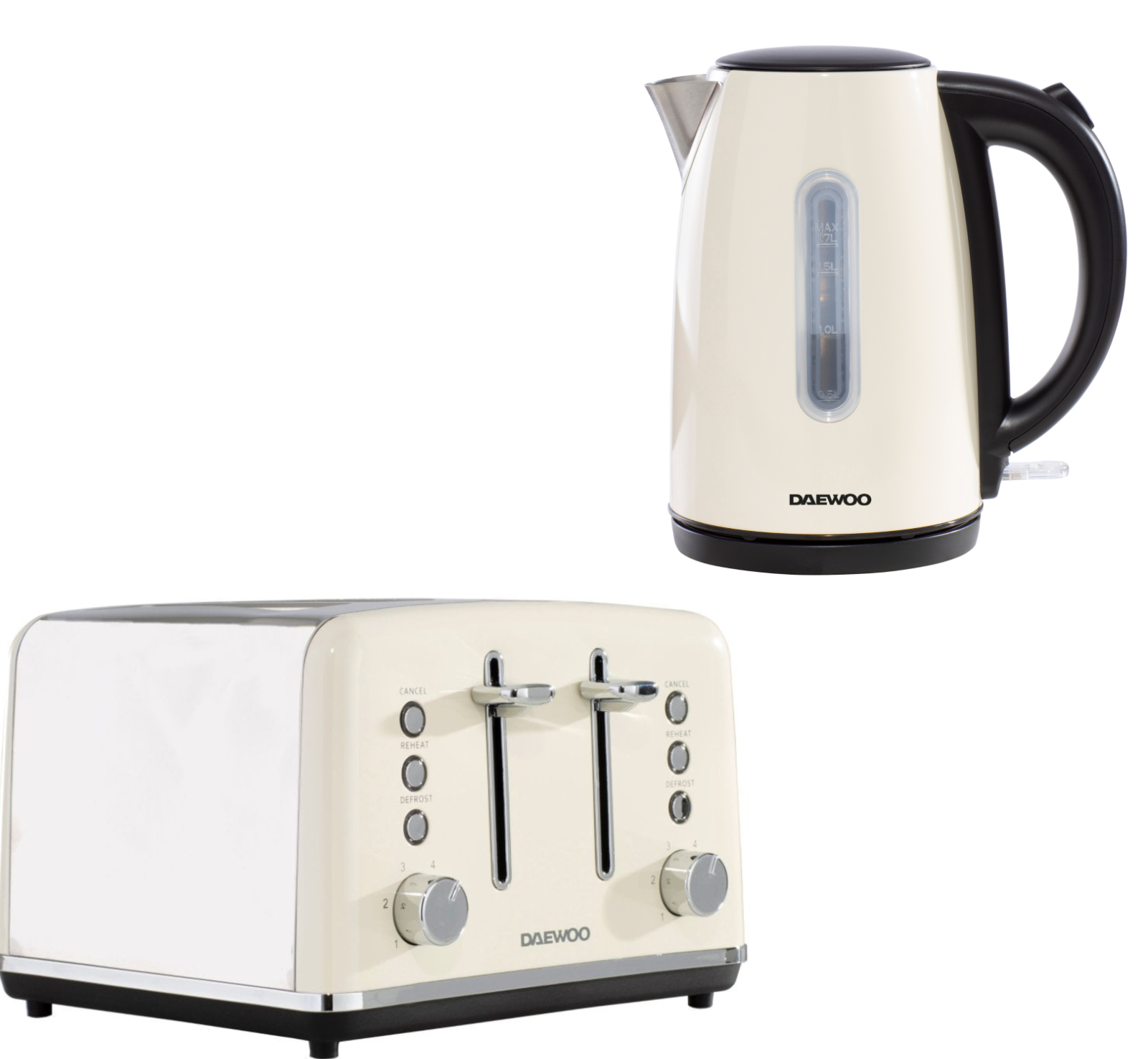 Daewoo 1.7L ‘Kensington’ Matching Jug Kettle and 2-Slice Toaster Set Pack in Cream