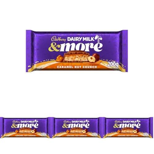 Cadbury Dairy Milk & More Caramel Nut Crunch Chocolate Bar, Treat for Snacking, Sharing & Gifting 200 g (Pack of 4)