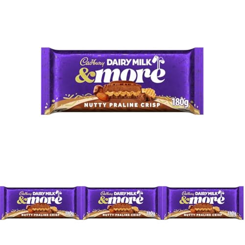 Cadbury Dairy Milk & More Nutty Praline Crisp Chocolate Bar, Treat for Sharing, Snacking & Gifting 180 g (Pack of 4)