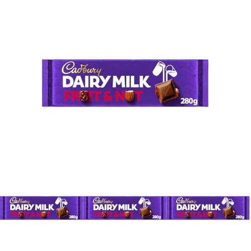 Cadbury Dairy Milk Fruit & Nut Chocolate Bar, The Classic Creamy Taste, Sharing Bag, 280 g (Pack of 4)