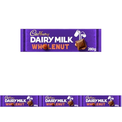 Cadbury Dairy Milk Wholenut Chocolate Bar, The Classic Creamy Taste, 280 g (Pack of 4)