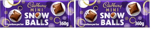 Cadbury Festive Mini Snow Balls Chocolate Bar, Smooth Dairy Milk Chocolate Filled With Chunks of Coated Dairy Milk Bites, Christmas Treat for Gifting or Sharing, 360 g (Pack of 2)