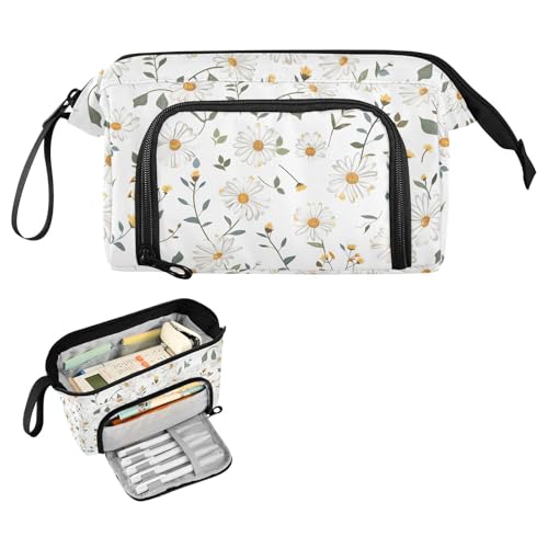EdsfFehs Large Capacity Wild Daisy Flower Print Double Layer Zipper Pencil Case,Multi Compartment Portable