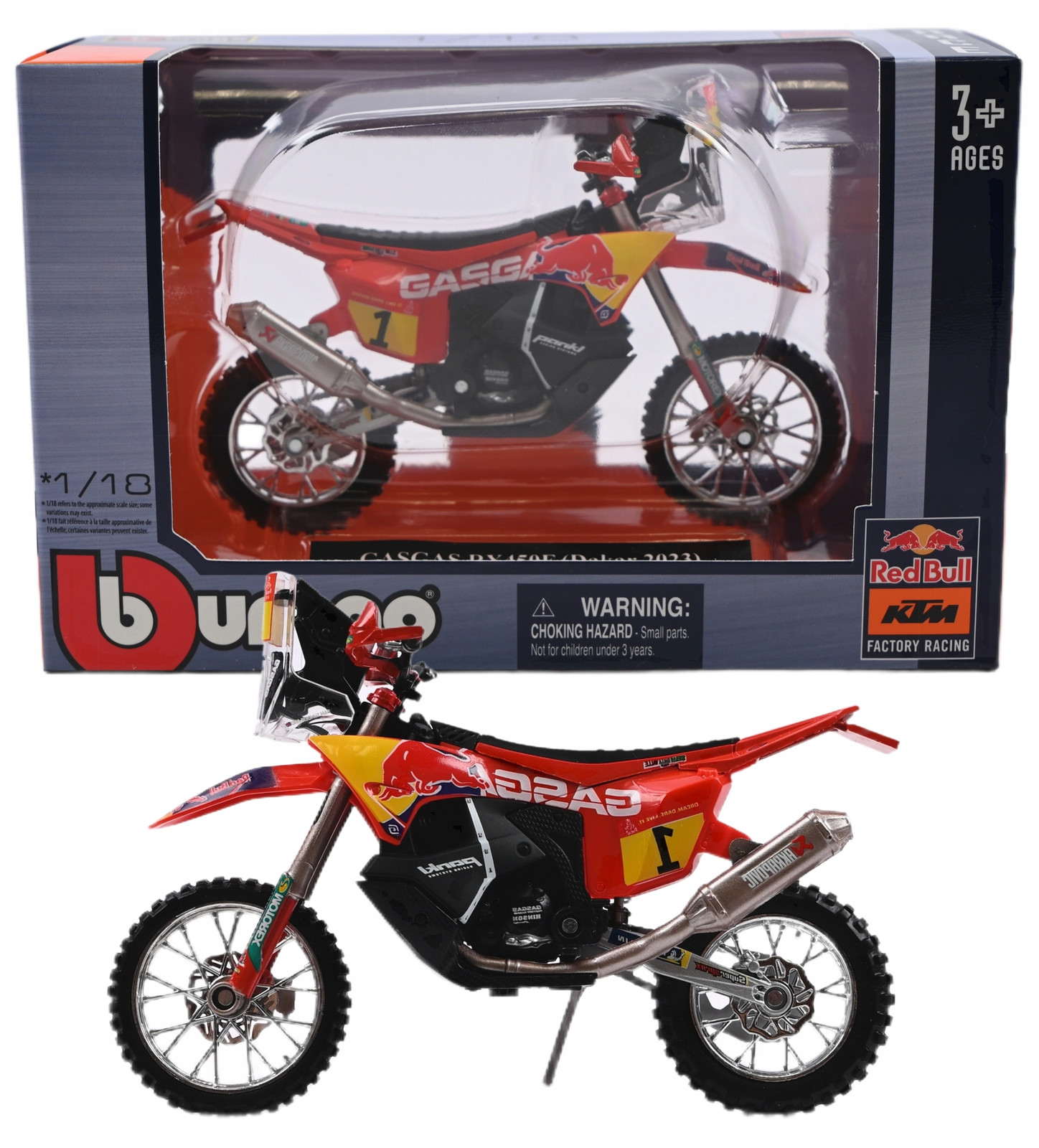 Bburago GASGAS RX450F Dakar Rally 2023 – Red Bull Racing Motorcycle 1:18 Scale Die-Cast Replica Model – Authentic Off-Road Bike Collectible for Ages 3